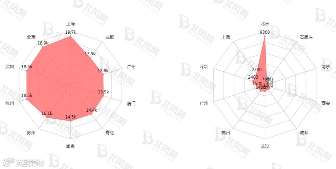 薪水维度:二线城市与热门一线城市相差20%左右。