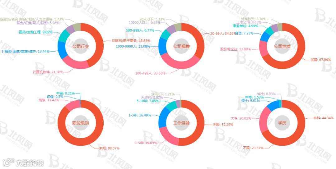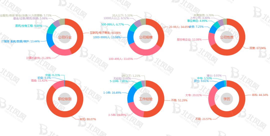 学历维度:本科占招聘职位的44%以上,入行门槛相对较高