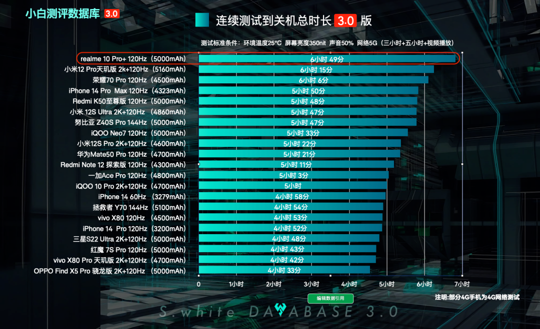 【榜单】小白测评数据库3.0新增realme真我10Pro+实测数据
