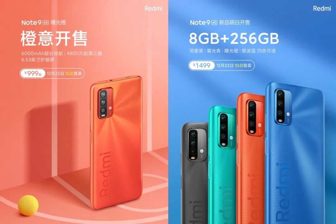 Redmi Note 9 4G版全新配色「曙光橙」和全系大储存版「8+256GB」将于12月22日也就是明天上午10点首销。