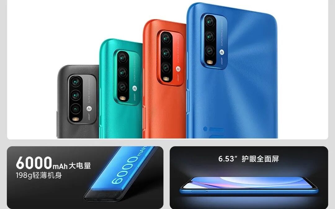 ,塑料后盖,前置8MP,后置三摄48MP+8MP超广+2MP微距,提供雾光青、曙光橙、烟波蓝、羽墨黑4个配色。