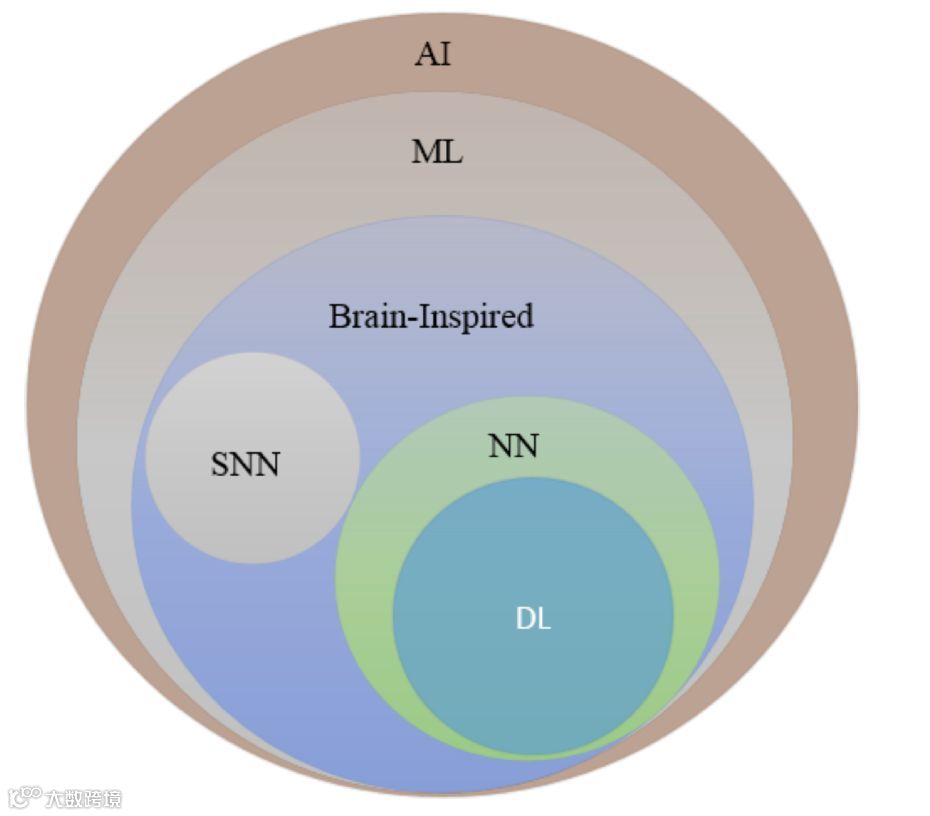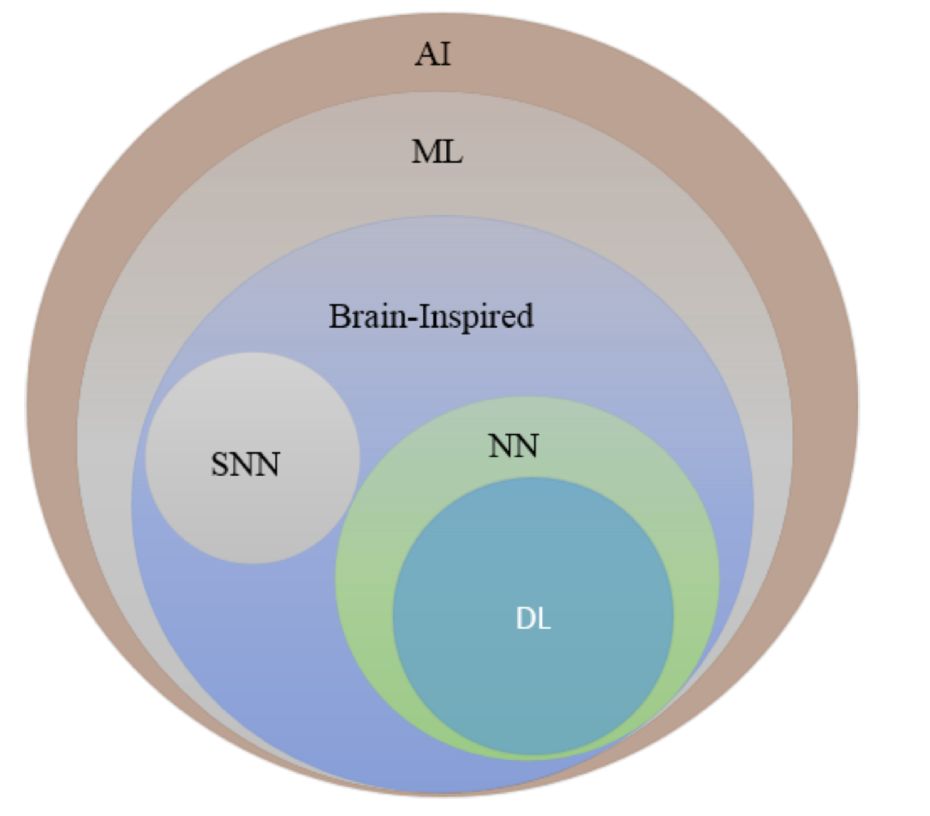 图 1:人工智能谱系:AI、机器学习、神经网络、深度学习和脉冲神经网络(SNN)。