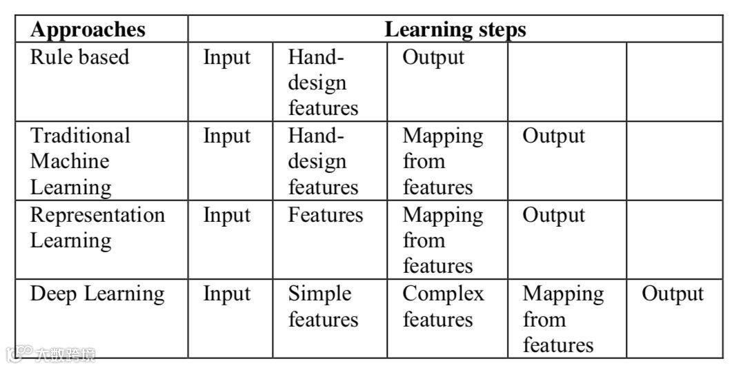 另一方面,在深度学习中,这些特征会被自动学习并在多个层上分层表示。这是深度学习超越传统机器学习方法的原因。上表展示了不同特征学习方法与不同学习步骤之间的关系。