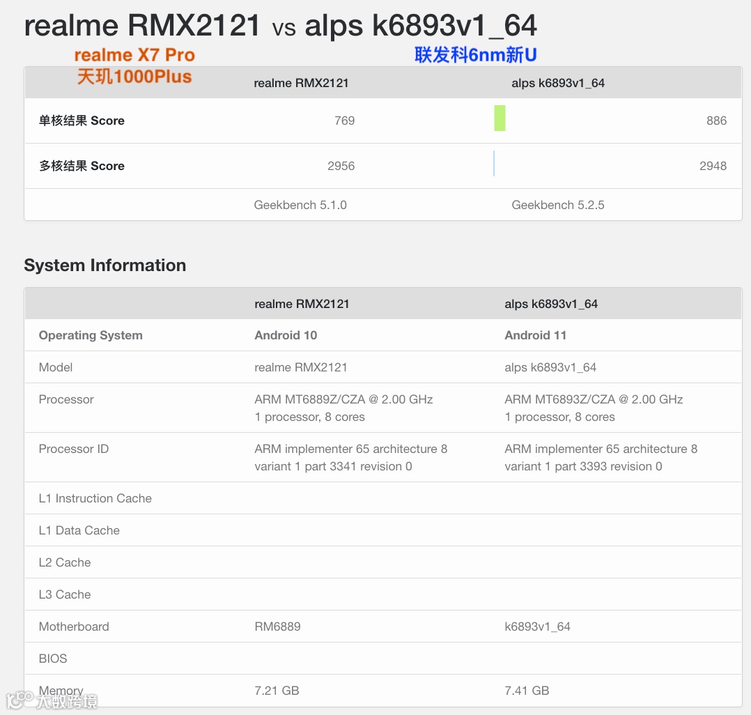 作为补充,联发科6nm新U在Geekbench 5单核跑分886,多核跑分2948,频率为2Ghz,对比天玑1000Plus的跑分来说,俩多核持平,单核则是这颗6nm新U的表现更好一些~当然了现在还是工程机不排除有变动的因素。
