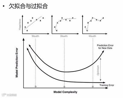 欠拟合和过拟合是经常出现的两种情况,简单的判定方法是比较训练误差和测试误差的关系,当欠拟合时,可以设计更多特征来提升模型训练精度,当过拟合时,可以优化特征量降低模型复杂度来提升模型测试精度。