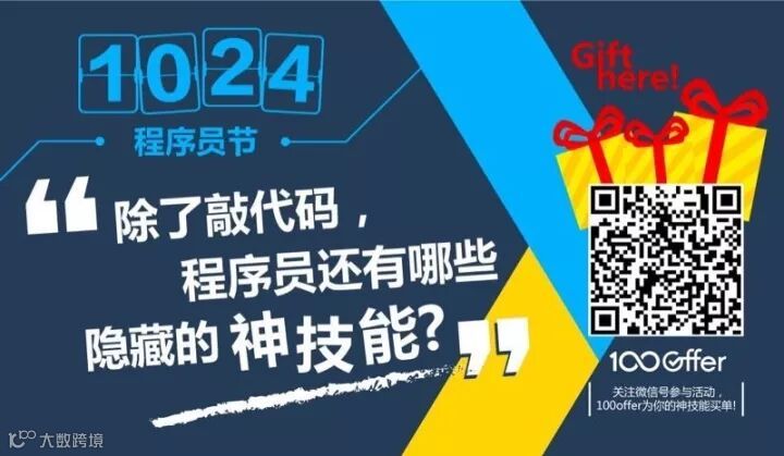1024程序员节这天,100offer给你一个撕掉标签的机会:关注100offer微信号,发送一段话/一张图/一段视频/一条语音…展示你除了敲代码以外的神技能,还有最高价值1024元的“程序员兴趣基金”等你拿!