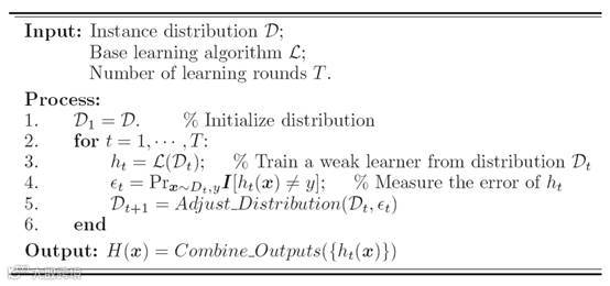 AdaBoost 是Boosting中最具代表性的算法。AdaBoost 是一种Boosting方法,与Bagging不同的是,Adaboost中不同的子模型必须是串行训练获得,每个新的子模型是都根据已训练出的模型性能来进行训练的,而且Boosting算法中基学习器为弱学习,可以理解为只比随机猜测好一点,在二分类情况下,正确率略高于0.5即可。
