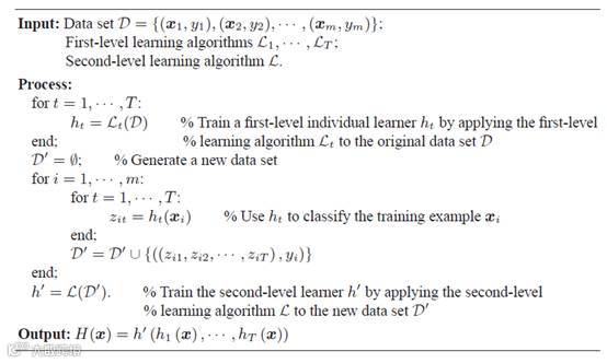 Wolpert在1992年的一篇论文中对 stacked generalization进行了介绍 , stacked generalization背后的基本思想是使用大量基分类器,然后使用另一种分类器来融合它们的预测,旨在降低泛化误差。