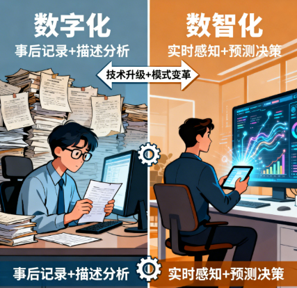 你看,从数字化到数智化,体现的是企业数据应用从"事后记录"到"实时感知",从"描述分析"到"预测决策"的深度演进。这不仅仅是技术的升级,更是企业运营模式的根本性变革。