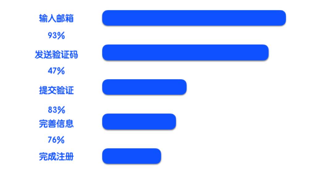 某企业的注册流程采用邮箱方式,注册转化率一直很低,才27%;通过漏斗分析发现,主要流失在【提交验证码】的环节。