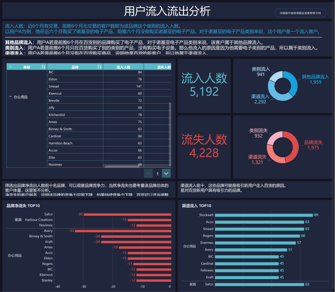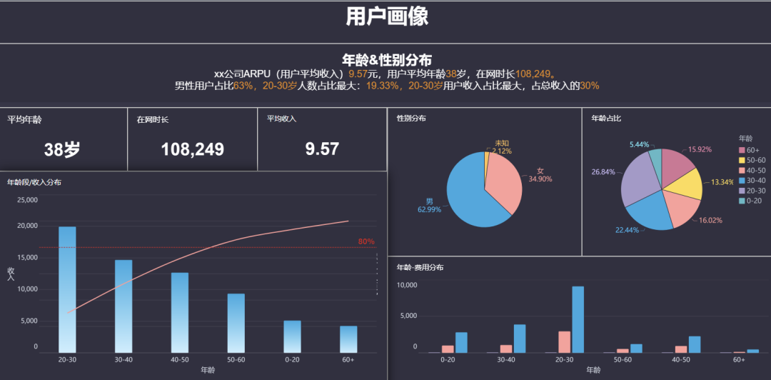 小帆建议朋友们不妨用用工具。小帆经常使用一款数据分析工具来提高数据分析工作效率,可以一键导入不同数据库,通过分组汇总、合并去重等功能完成数据清洗,再用简单的拖拉拽等操作,即使是非专业数据分析师的业务人员也能几分钟就能把用户分析模型生成出来,无需额外培养IT团队。下面这张就是用FineBI做出来的数据看板,想做好用户分析的朋友不妨动手试试,小帆把下载地址放在这里了,点击链接就能下载: