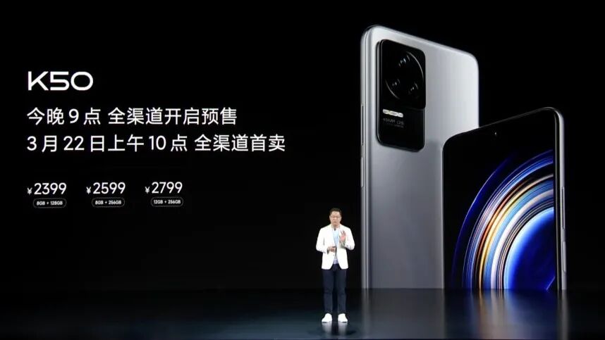 价格上,Redmi K50(天玑8100➕5500mAh电池):8+128GB版售价2399元,8+256GB版售价2599元,12+256GB版售价2799元,今晚21点开启预售,将于3月22日上午10点全渠道首卖。