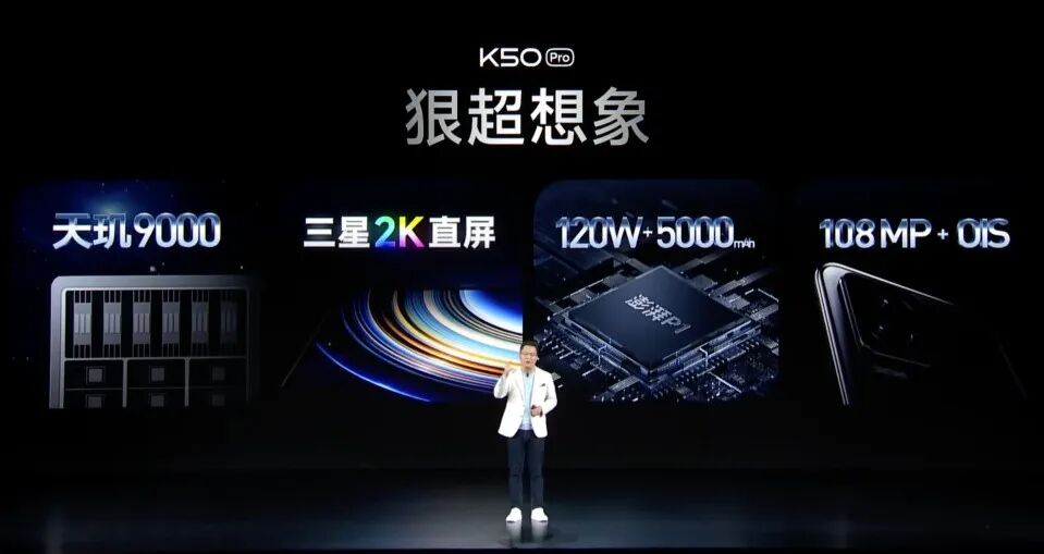 核心配置上,K50首发搭载联发科天玑8100处理器,支持5G、蓝牙5.3、WiFi 6 80MHz,LPDDR5+UFS 3.1,3950mm²VC液冷立体散热系统,5500mAh大电池(单电芯 MMT极耳中置),67W快充(48分钟充至100%),立体双扬声器,X轴线性马达、支持NFC、红外遥控、运行MIUI 13等。