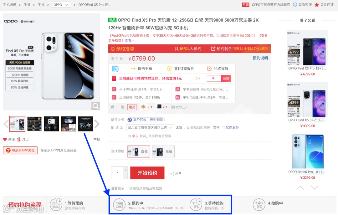 2月24日OPPO发布的Find X5 Pro天玑版则是天玑9000的第一款量产机型,官方预热将于3月14日开启预定,3月18日正式开售。但今天去电商平台预约,发现开卖时间似乎有延期。