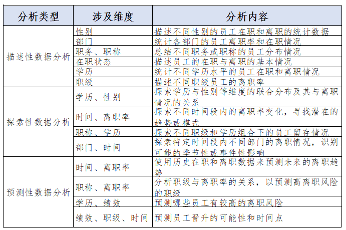 洞悉业务背景主要是通过描述性分析来实现的。描述性分析能够直观地展示数据的现状,如入职人数、在职人数、离职人数以及离职率等。同时,我们还可以结合不同的维度进行更深入的分析,以揭示数据背后的规律和趋势。