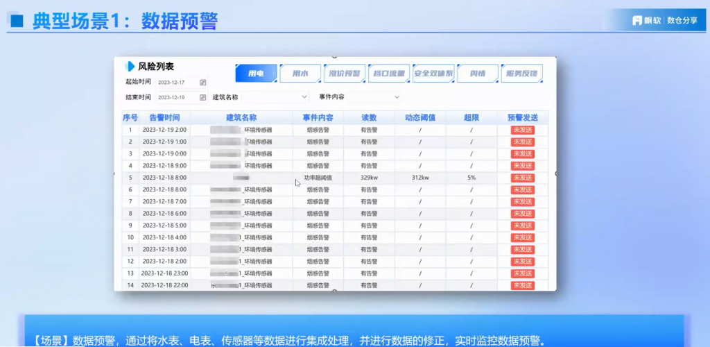 以水表、电表和传感器数据为例,这些数据同样来源于不同的系统,且水表型号多样、更新频率各异。为了实现对这些数据的实时监控与预警,可以借助数据集成工具。通过整合、清洗和修正来自各系统的传感器数据,建立了一个高效的数据处理流程。这一流程能够及时发现设备异常、漏水等问题,并通过表间关联预判潜在风险,从而保障校园运行的安全与稳定。