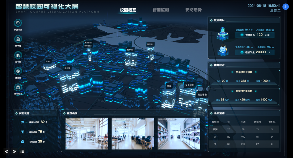 第三:可视化程度不足的数据整合,对校园数据进行综合分析和实时展现,很难通过一张屏幕进行全面展示,导致对数据的整体把握不够直观。