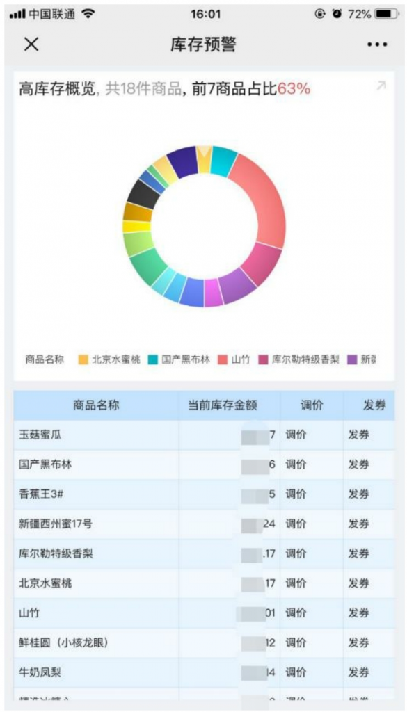 4. 库存预警与出清:超市开发了BI移动应用,综合考虑销量预测、库存和保质期等因素,计算风险库存和预计售罄日期,并通过预警列表指导门店运营人员进行调价、发券等操作,形成了闭环管理。