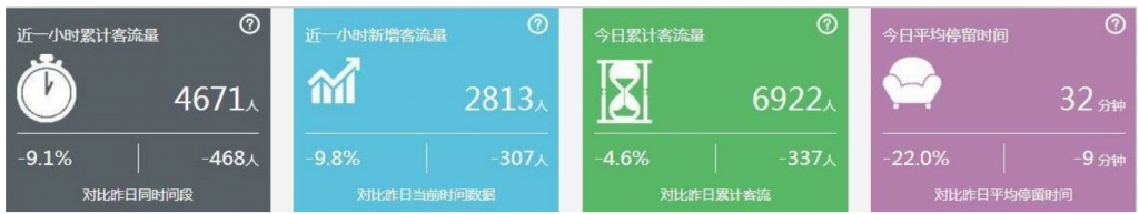 客流实时分布分析图通过不同颜色的热力图标识各个区域,颜色越深表示客流量越大。通过这些分析,管理者可以识别客流的来源区域,甚至具体到周边的小区。此外,还可以进一步分析不同区域客户的购物目的和习惯,探索潜在的未满足需求。