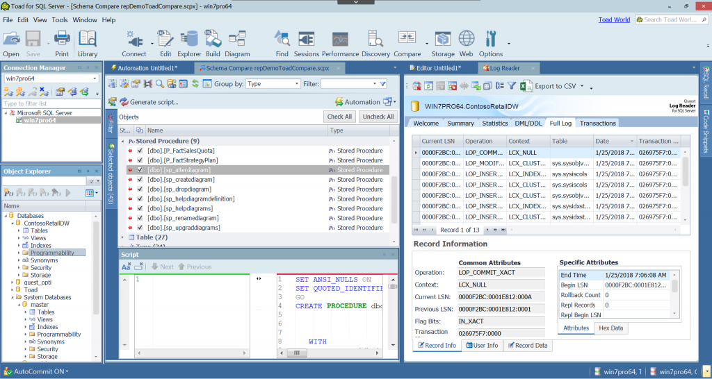 Toad 是一个功能强大的数据库管理工具,主要用于连接和管理 Oracle 数据库,同时也支持其他数据库系统。它提供了丰富的功能,如 SQL 查询、性能优化、数据比较等。Toad 还支持自动化任务和批处理操作,以提高用户的工作效率。