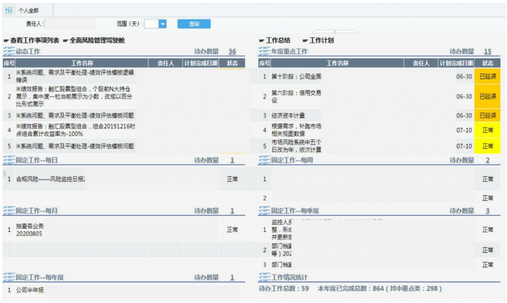 面对繁琐的风险管理工作,涉及人员需同时应对多项任务,实时记录数据,并定期进行工作总结与复查。为了提高效率和有序性,该公司开发了风险管理工作台,以优化风险管理流程。