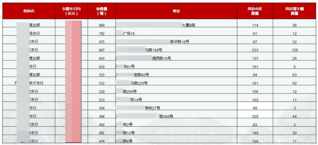 对于在同一地区拥有数十甚至数百个网点的银行来说,如何评估各网点的业务规模是否与周边环境相匹配?
