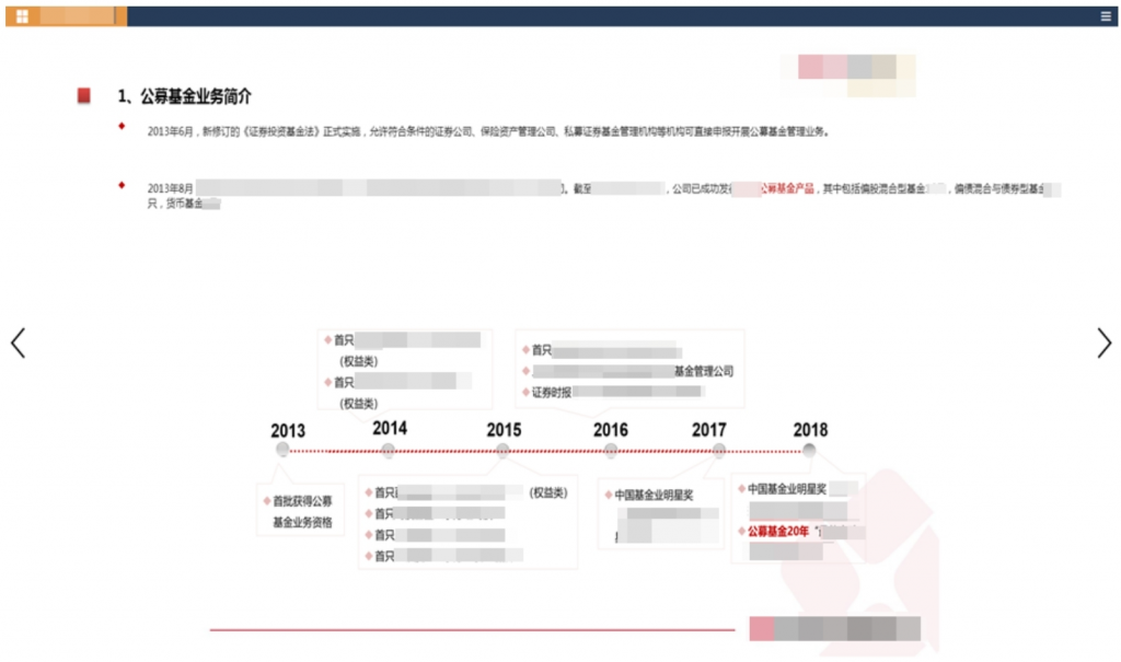 ● 修改工作繁杂:路演PPT文稿中的文字描述部分一般不会发生变化,但涉及的数据指标却是时常变化的,而这些数据如管理规模、基金产品数量、同业排名、基金经理信息、收益率变动趋势等,分散在每页PPT文稿中,每次路演时基金经理都需要查询最新数据再手动修改,耗费大量时间,并且可能会存在数据不准确的情况。