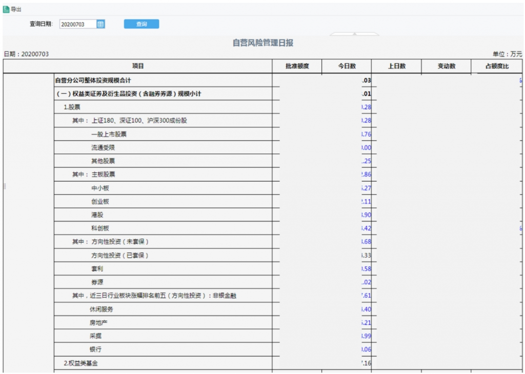 在该证券公司,管理层需要每日掌握不同业务线的风险概况。传统上,风险管理人员需手动汇总并汇报风险管理日报,这一过程耗时且效率不高,特别是对于业务种类繁多的综合型券商。例如,仅编制一份自营业务的风险管理日报就至少耗费1小时,且管理层在查阅日报时的体验并不理想。