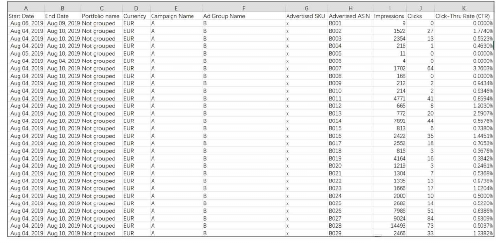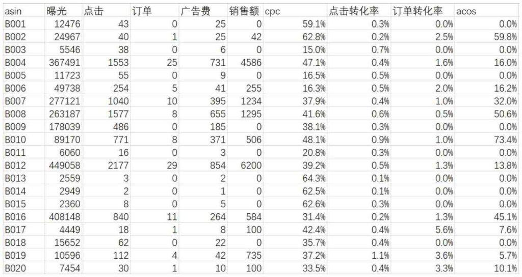 随后,我们将对数据进行清洗和整理,目的是获取以产品为分类基础的广告数据视图。在亚马逊平台,每个产品都有一个独特的识别编号,即ASIN(亚马逊标准识别码)。