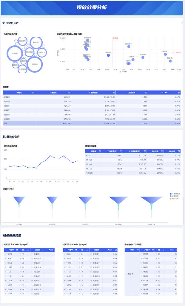 然而,广告数据分析并非易事。它涉及到对大量复杂数据的收集、处理和解读,包括但不限于点击率、转化率、广告花费、产品定位等多个维度。有效的数据分析不仅能够帮助卖家了解当前的广告表现,还能够预测市场趋势,调整营销策略,实现成本效益的最大化。