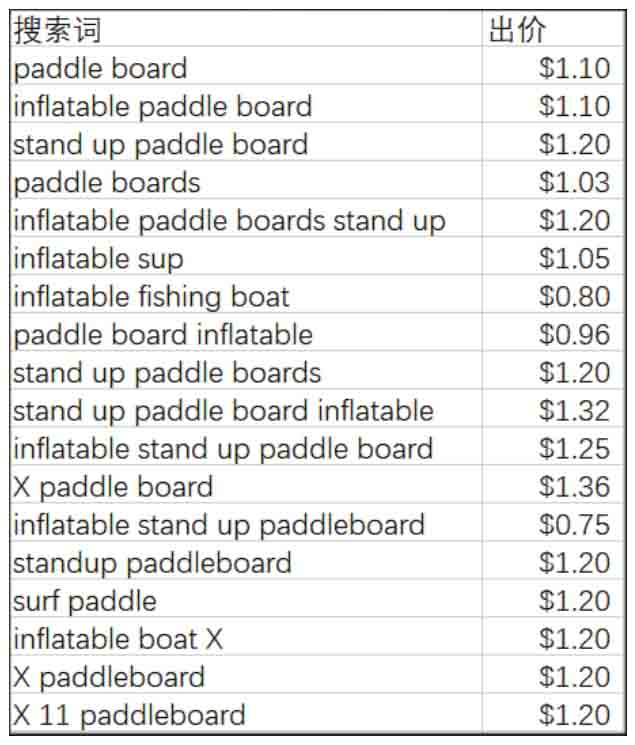 在确定优化后的关键词后,接下来我们需要分析关键词的出价策略。这需要参考单次点击付费(CPC)数据,即用户每次点击广告的成本。我们计划以自动广告的CPC数据为基础来设定手动广告的出价。