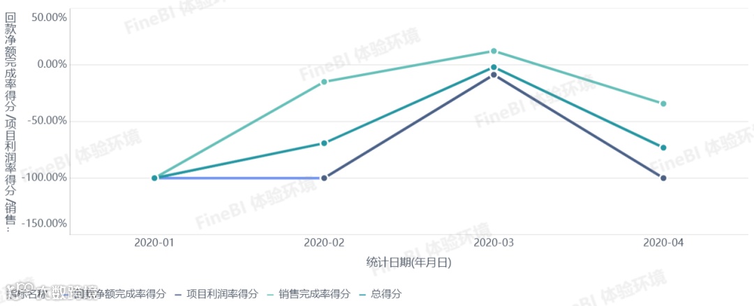 最后,小帆利用FineBI v6.0制作了不同指标的数据图表,并将它们进行了展示,比如这样: