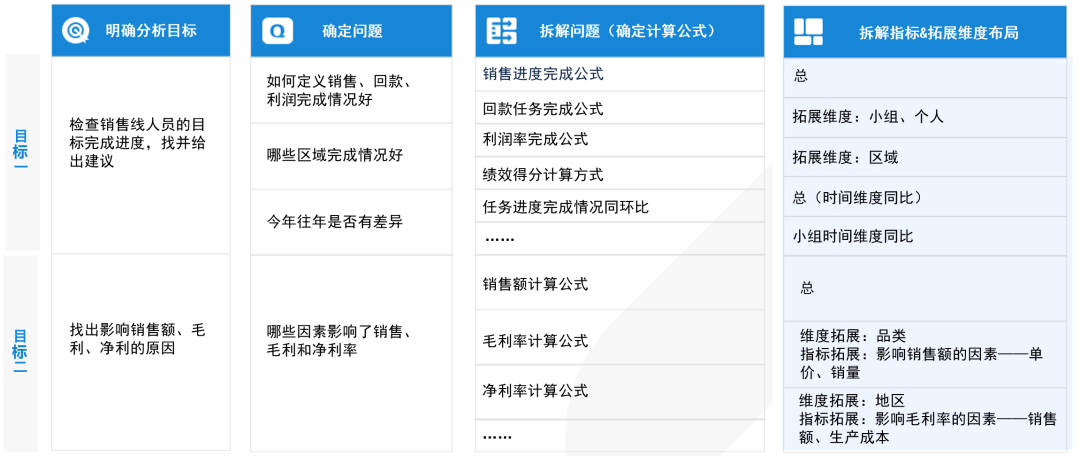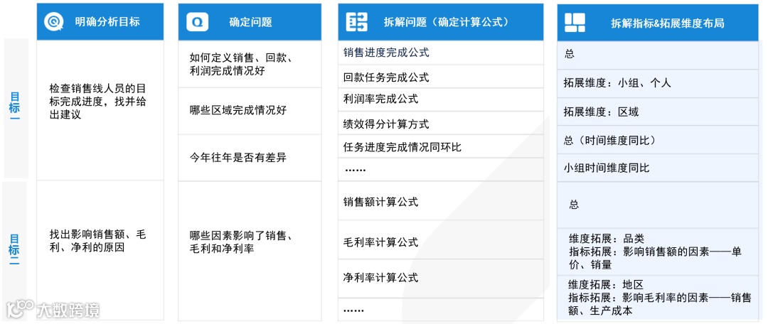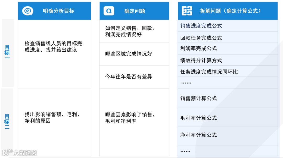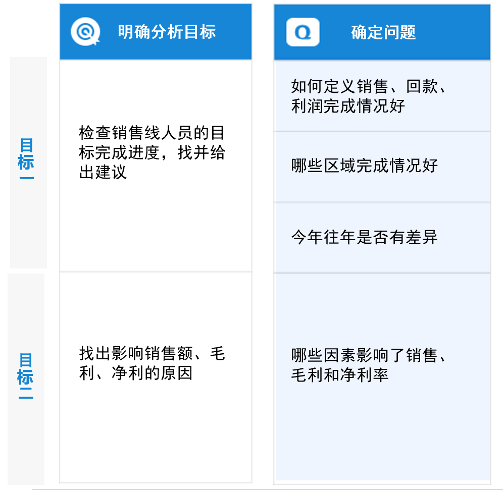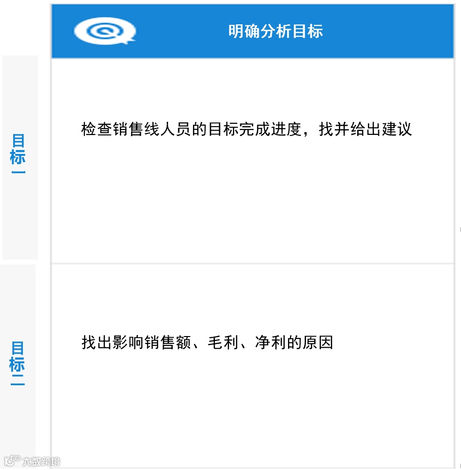 接着,明确分析目标后,就需要确定为了达成该目标,需要提出围绕该目标需要解决的问题: