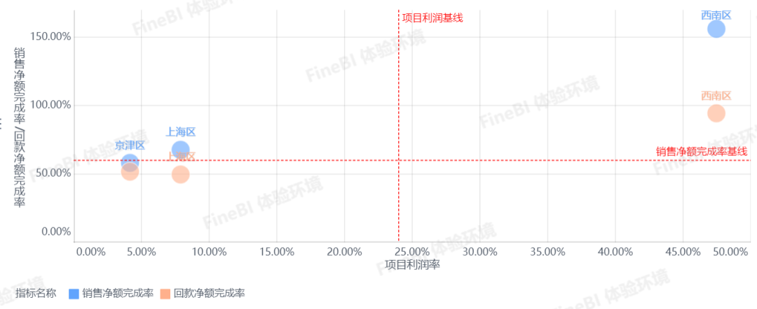 也可以通过同一区域——上海地区,不同时间——今年1月和3月、或者上海与京津地区分别在1月的绩效情况等等维度来对比判定。
