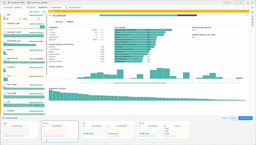 AI辅助的自助服务:Trifacta 利用人工智能技术,提供自助服务方法,使用户能够协作评估、纠正和验证数据质量。