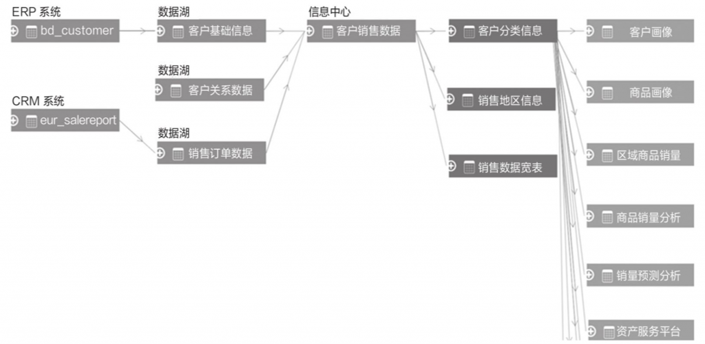 通过这种分析,可以构建出一个展示实体及其所参与的数据处理网络的视图,例如,表与ETL(提取、转换、加载)作业之间的连接、表与分析应用程序的交互,以及不同表之间的关联关系等。