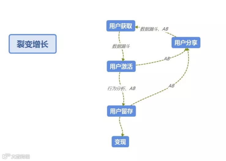 从获客到传播推荐,整个 AARRR 模型形成了用户全生命周期的闭环模式。在传播环节中,从理论上来看,只要能驱动老用户邀请新用户参与,并且平均每位老用户邀请的新用户不少于一人,就能保证并且保证用户规模不断扩大,实现持续增长。因此产品和运营们会想方设法地在每一个关键路径让用户去产生裂变分享行为,吸引更多新用户,减少各漏斗环节的流失率,以实现用户的持续增长。