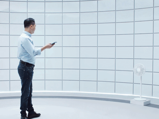 一指操控:手机指向电扇,控制卡片自动浮现。拿起手机,对准智能设备,自动弹出操控界面。打开电视、台灯调色等,一指即可到位。