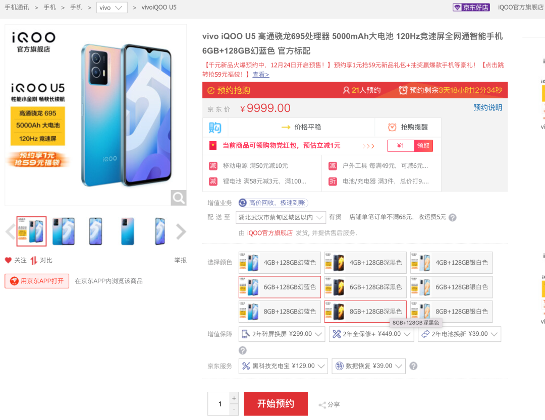 【新机】iQOOU5上架 120Hz水滴屏/5000mAh大电池/骁龙695