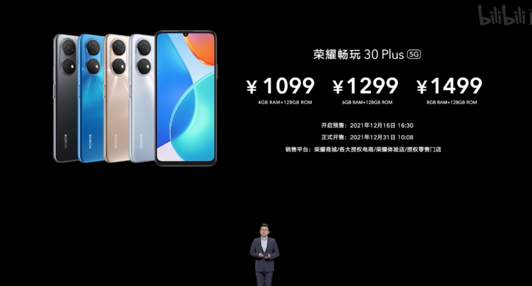 价格上,荣耀畅玩30 Plus 4+128GB版售价1099元,6+128GB版售价1299元,8+128GB版售价1499元,目前已经开启预售,将于12月31日10:08 正式开售。