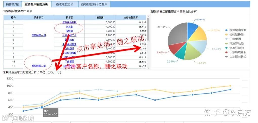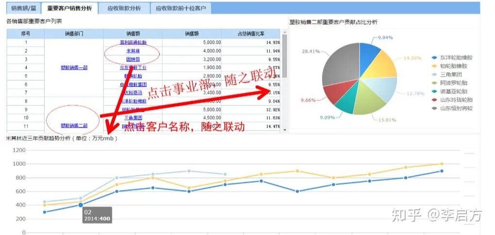主要指标:销售额、计划完成率、应收账款、超期账款、超账期利息、账龄