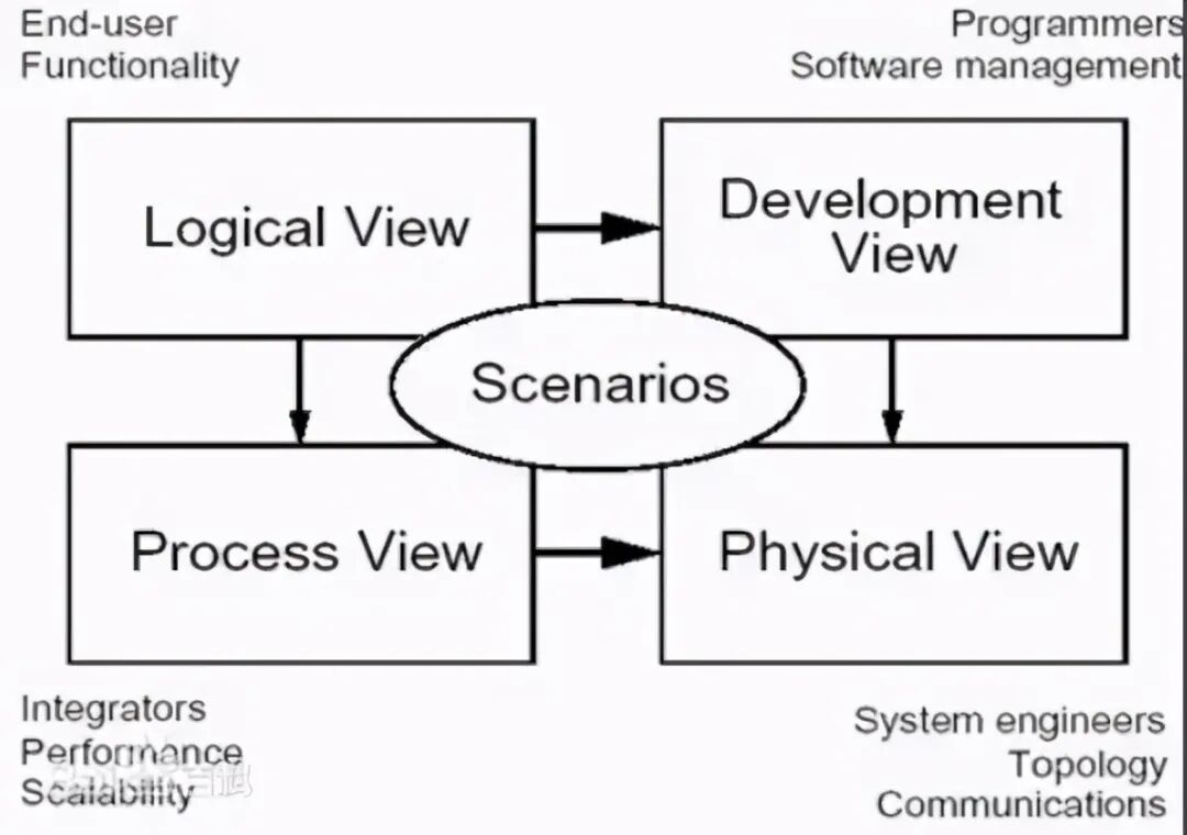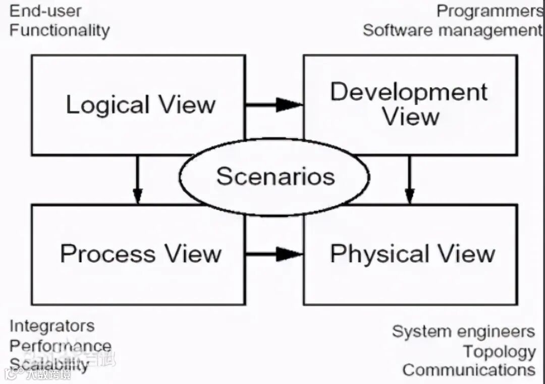 一个垃圾系统有三种架构,是不是很屌,不同的角度就有不同的架构。在这里我们也可以了解一下著名的“4+1 视图”