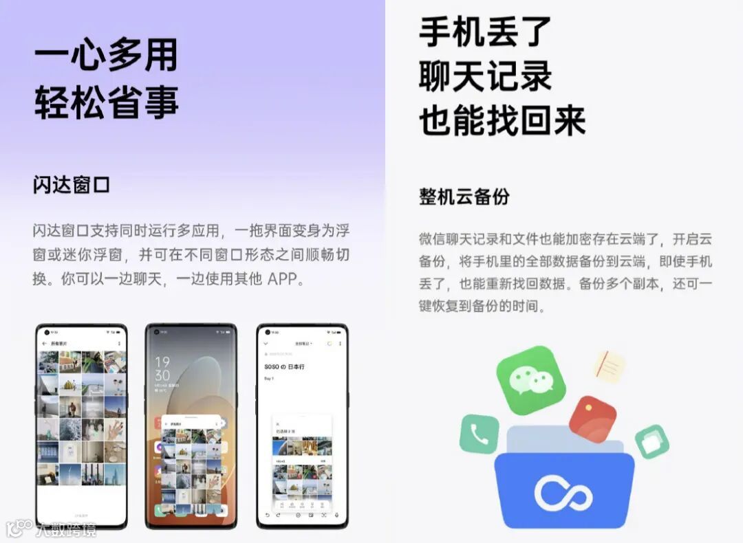 总结一下,ColorOS 11的动画、悬浮窗等升级还不错,但也有一些功能友商之前就有,比如像云备份华为之前就有,而暗色模式调节切换深浅度vivo也有,而ColorOS 11最大的嘈点应该还是一如既往,升级机型虽然数量多,但细看很多型号都是一个系列,发布于两年前的OPPO Find X系列以及从前的R系列都不在升级名单中,所以只能说过气机型不如...