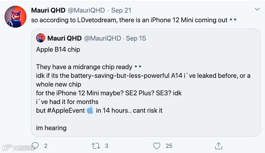 不过配置上最近有些变化,据爆料,iPhone 12 mini(5.4英寸版)或搭载降频版A14处理器,爆料还称这颗处理器将命名为B14,如果消息属实,降频版A14或许是5nm良品率低的产物?现在只能静待进一步消息了。
