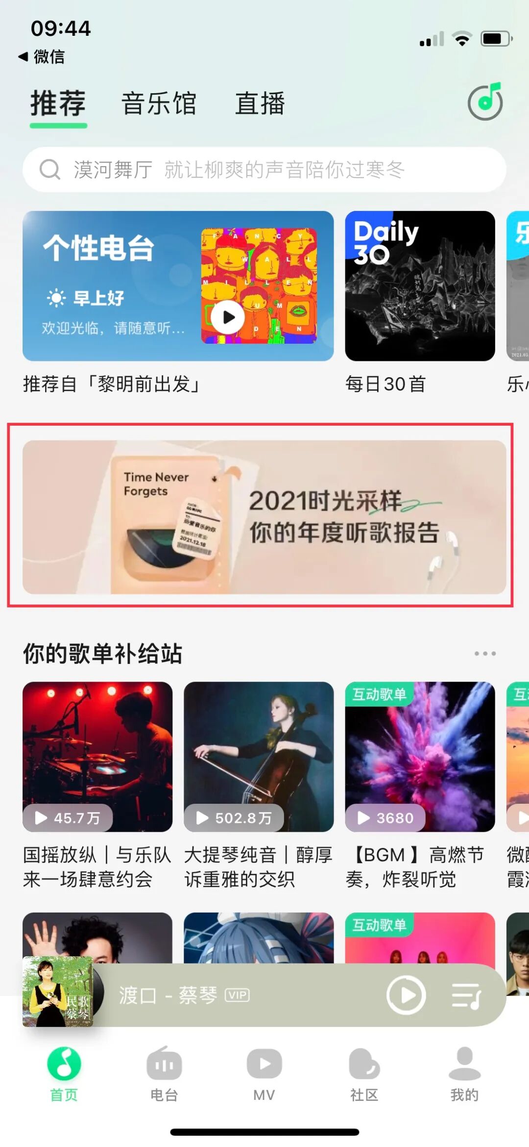 网易云音乐2021年度听歌报告:首页直接进入查看即可。