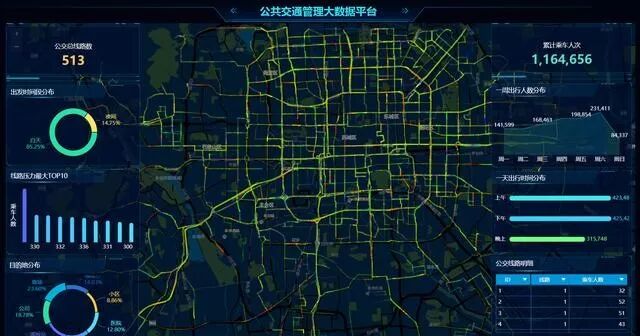 下图就是FineBI制作的公共交通管理大数据平台,通过这个平台我们可以根据公共交通线路高峰期,合理规划路线,降低出行交通拥堵情况;实时监控当前平台的数据状态,通过提前设定好的预警值进行数据预警,及时调整公共交通管理策略;通过对核心数据进行大屏设计和布局美化,关键指标一目了然。