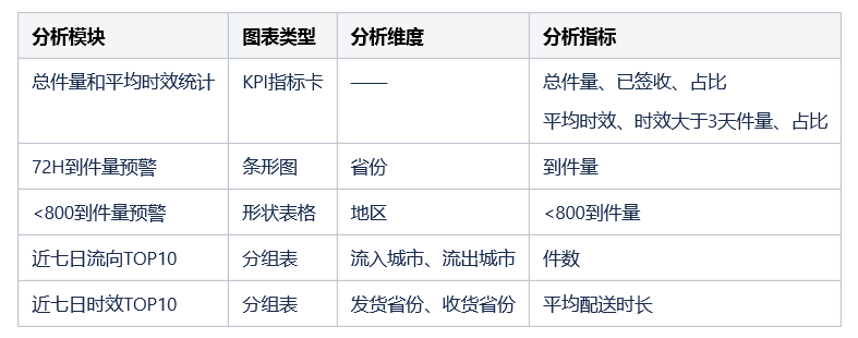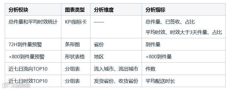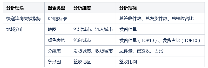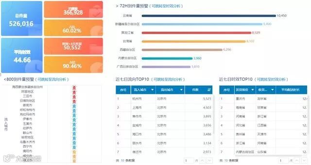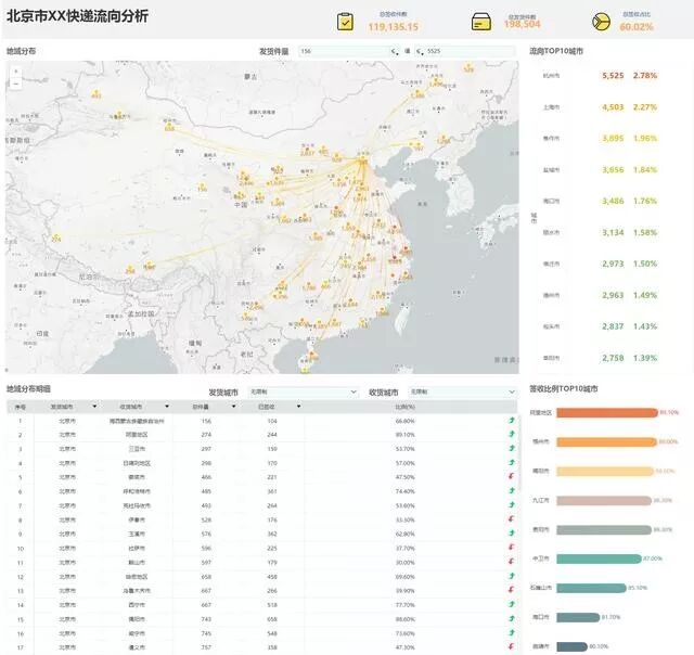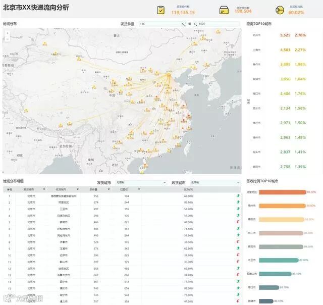 构建快递流向分析看板,按照流向统计分析数据,关键指标一目了然。