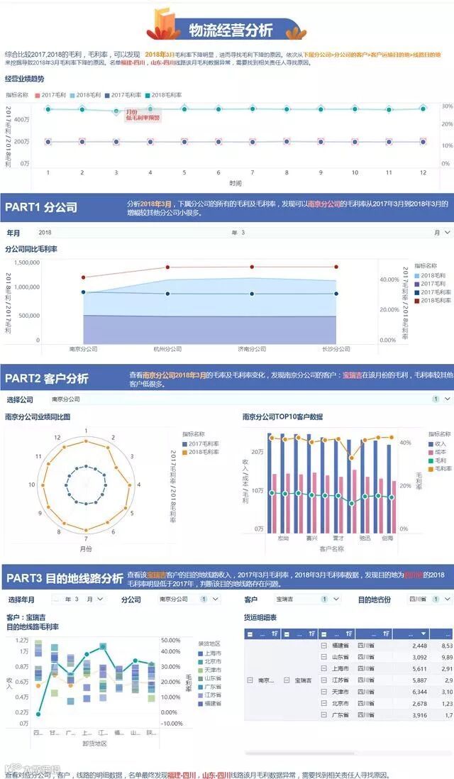 例如物流经营分析过程中,有的时候会出现某个月份的月报数据出现毛利下滑的异常,传统的月报、季报等固定化报表无法深入的回答导致数据下滑的真实本质原因。