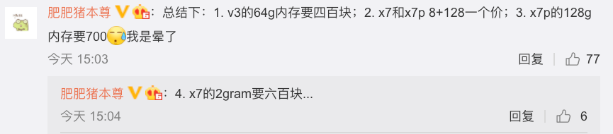 ,X7标准版的6和8GB版相差600,瞬间引起大面积吐槽。
