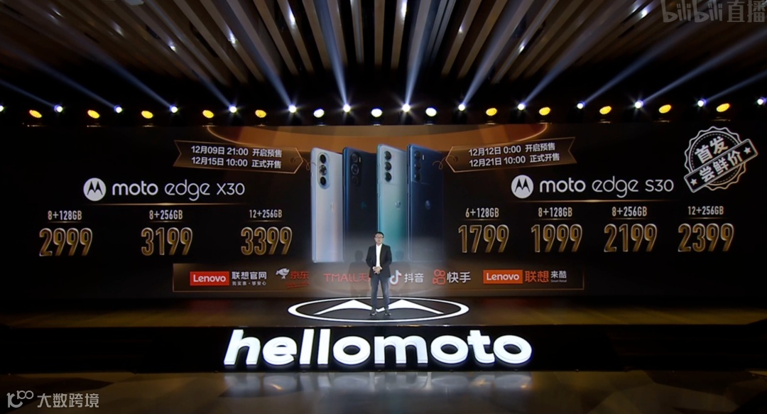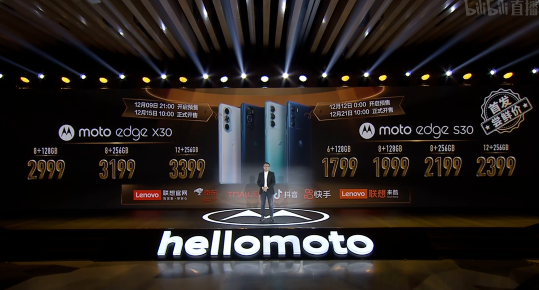 价格上,摩托罗拉moto edge X30 8+128GB版售价3199元(首发价2999元),8+256GB版本售价3399元(首发价3199元),12+256GB版售价3599元(首发价3399元),目前已经开启预售,将于12月15日上午10点正式开售。